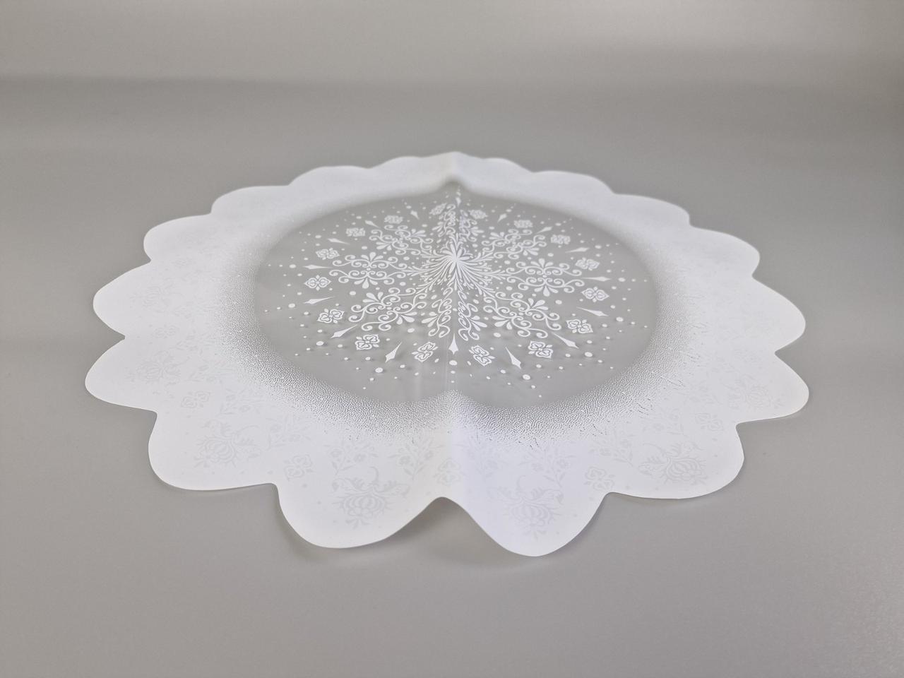 - Форма: Кругла, з елегантним хвилястим краєм, що створює декоративний ефект.
